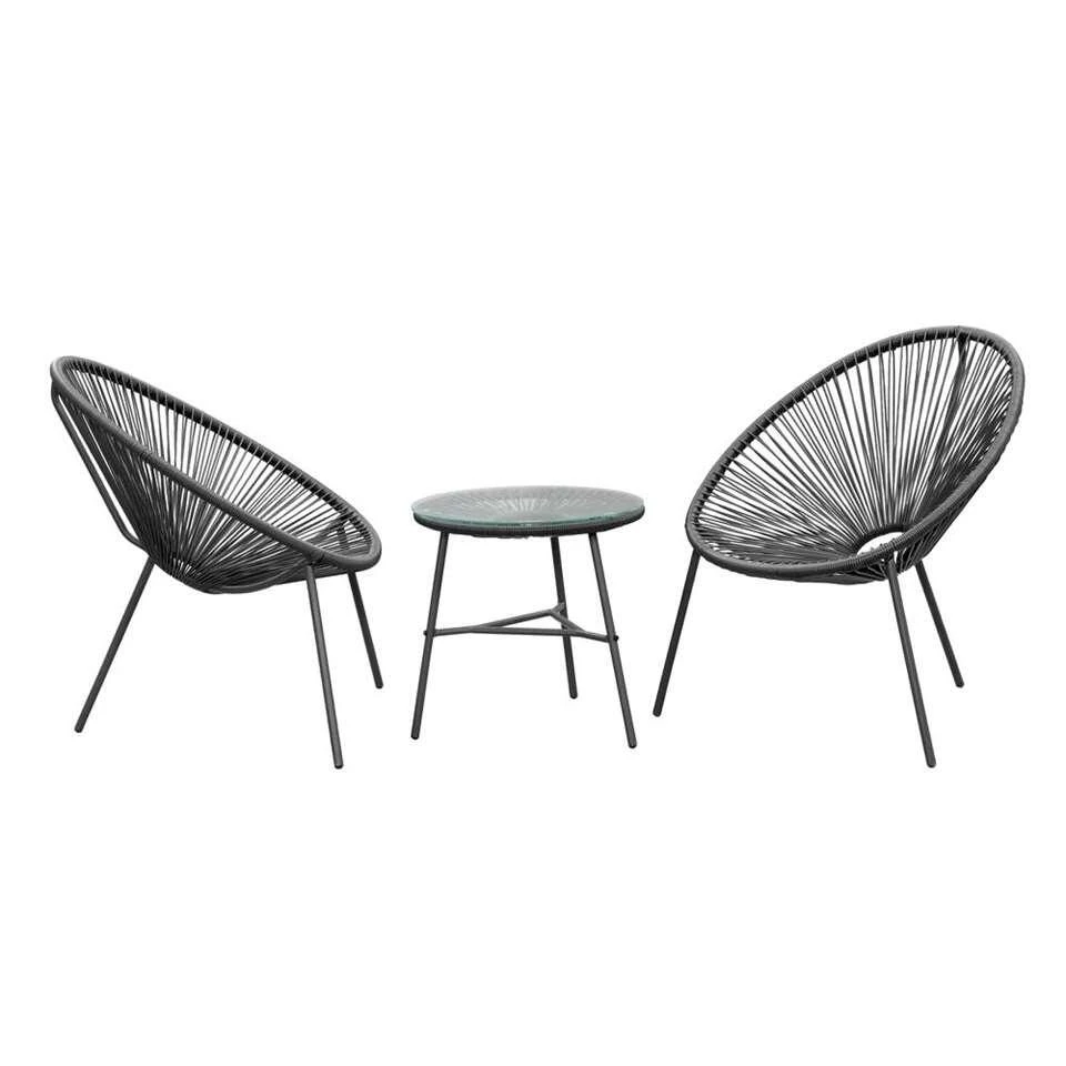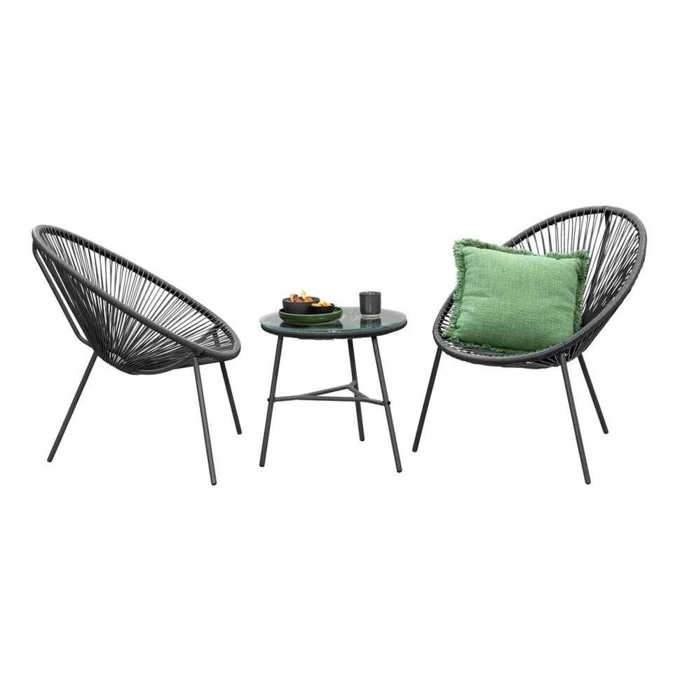 De loungestoelen zijn gemaakt van metaal en afgewerkt met kunststof rope in de kleur antraciet.