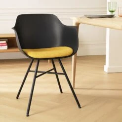 Nolon Noa-Liz Eetkamerstoel Zwart – Okergeel Kussen – Zwarte Poten