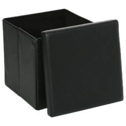 Atmosphera Poef/hocker – Opbergbox – Zwart – PU/MDF – 31 X 31 Cm