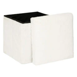 Atmosphera Poef/hocker – Opbergbox – Wit – PU/MDF – 38 X 38 Cm