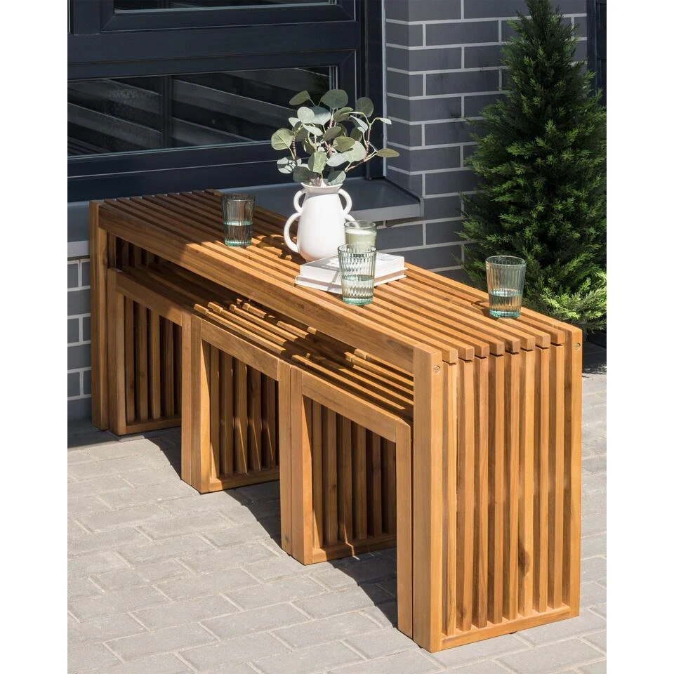 Extra informatie: Houd er rekening mee dat dit product gevoelig is voor weersomstandigheden en dus binnen moet worden opgeborgen wanneer het niet in gebruik is, Hout is een natuurproduct. Kleur- en structuurverschillen, nerven, knoesten, barsten en andere natuurkenmerken zijn een bewijs van echtheid en geen fouten die recht geven op vervanging, Voor dit product bieden we een gedetailleerd onderhoudsboek aan om ervoor te zorgen dat het meubilair er zo lang mogelijk goed uit blijft zien. Bekijk de onderhoudsinstructies en tips om goed voor je nieuwe product te kunnen zorgen – je vindt deze bij de montagehandleiding van het product op onze website.