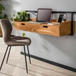 Beliani Verstelbaar Bureau DESTIN – Donkere Houtkleur Spaanplaat
