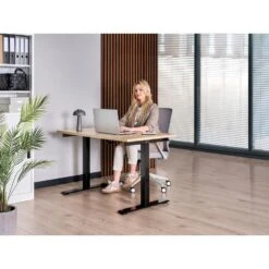 Elektrisch Verstelbaar Bureau – 140×80 Cm – Single Motor – Zwart / Eiken