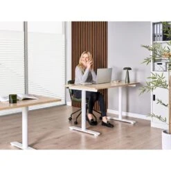 Elektrisch Verstelbaar Bureau – 140×80 Cm – Dual Motor – Wit / Licht Eiken