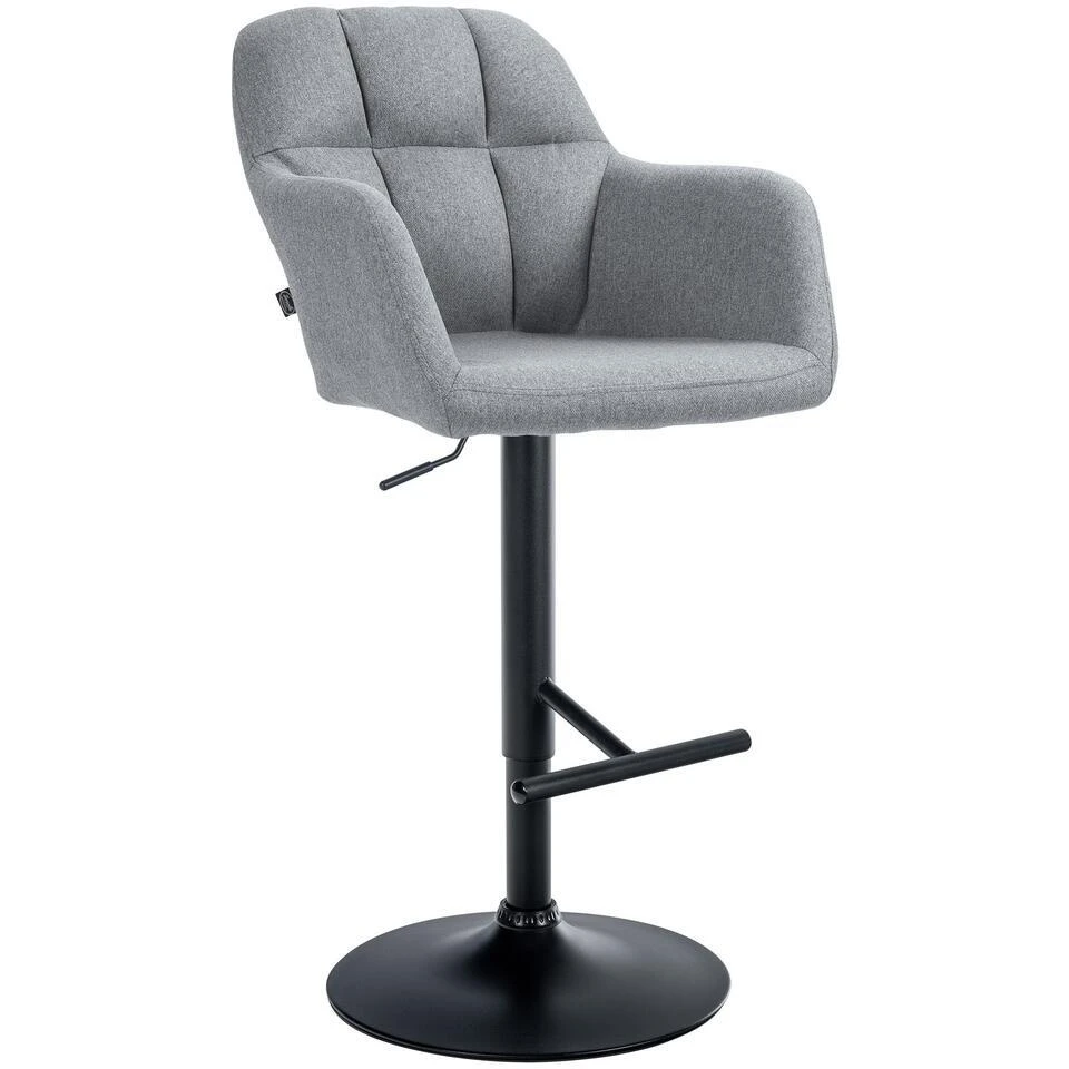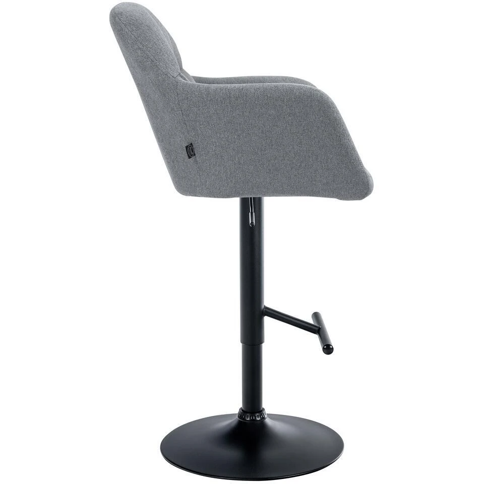 De stoffen barkruk Natoma wordt gekenmerkt door zijn functionele ontwerp en zitcomfort. Dankzij de hoogteverstelling van 97 tot 118 cm, een breedte van 57 cm en een diepte van 59 cm kan hij worden aangepast aan een breed scala aan barhoogtes. De zitting en rugleuning van 43 x 41 cm zijn ontworpen om steun en comfort te bieden. Armleuningen en een voetsteun op de trompetvoet maken de functionaliteit compleet, terwijl de vloerbeschermer schade aan het oppervlak voorkomt. Met een gewicht van 9 kg en een draagvermogen tot 120 kg is de Natoma-barkruk een stevige stoel. De 360° draaifunctie bevordert ook de mobiliteit en flexibiliteit.