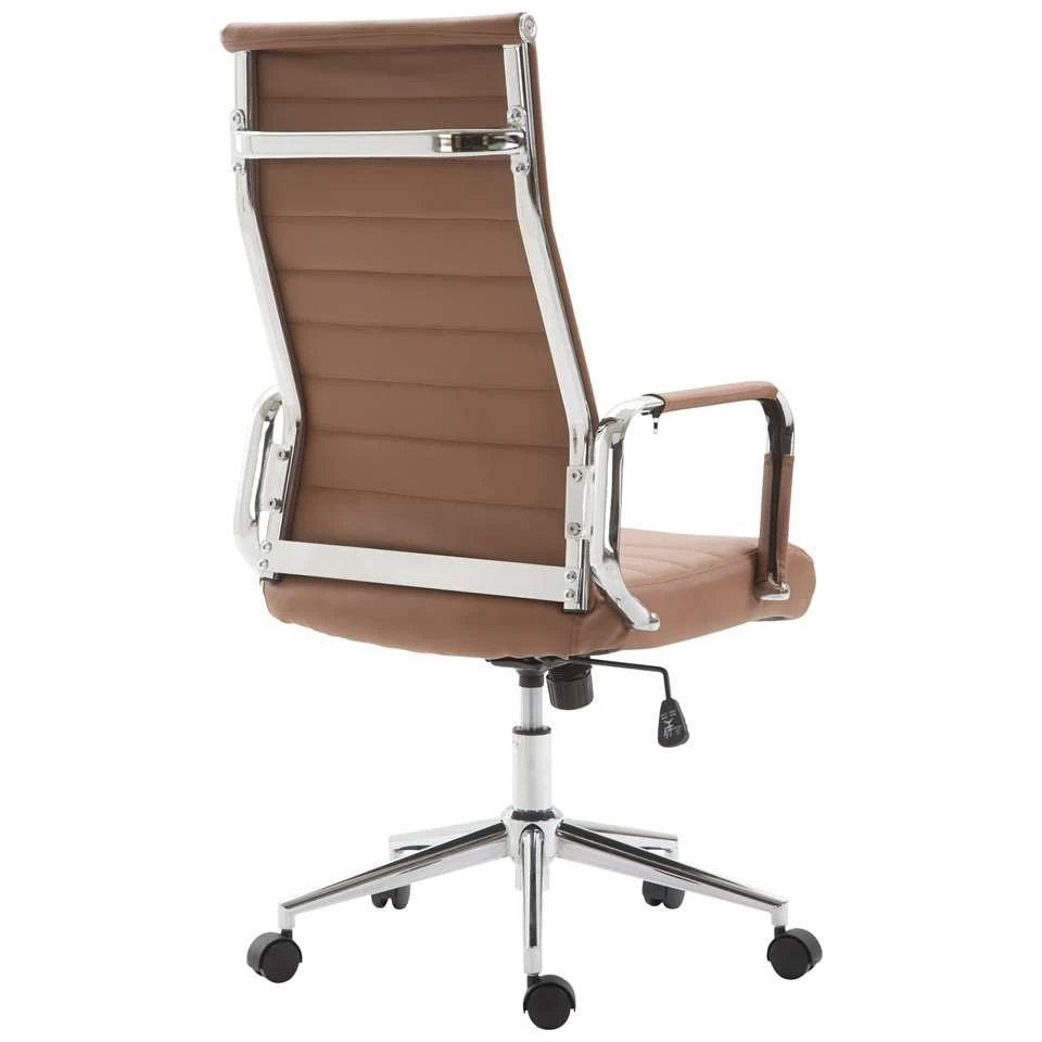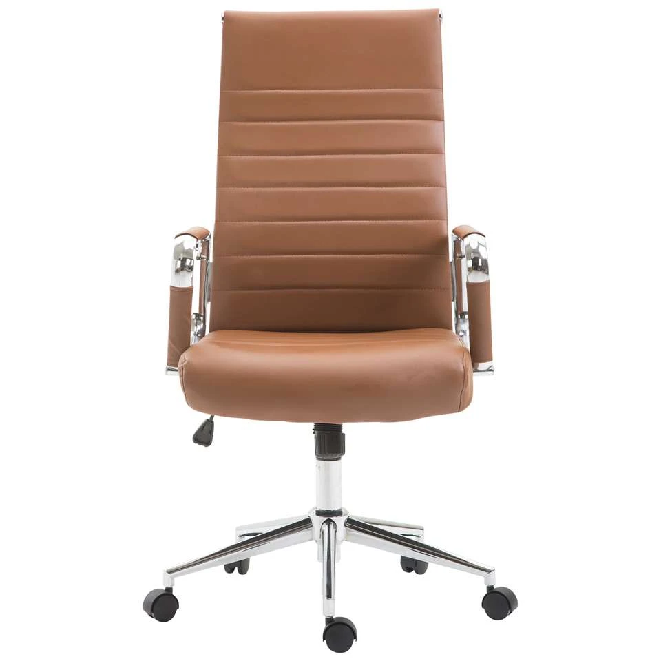 De exclusieve bureaustoel Columbus overtuigt niet alleen met zijn moderne uiterlijk, ook in termen van comfort kan niemand hem voor de gek houden. De hoogwaardige bekleding en de onderhoudsvriendelijke kunstlederen overtrek zorgen voor een aangename zitervaring. De zithoogte is traploos instelbaar en garandeert een ergonomische zitpositie. Bovendien is de bureaustoel uitgerust met een kantelmechanisme, dat meer bewegingsvrijheid biedt. Het elegante chromen frame en de stevige gebogen armleuningen met kunstlederen overkapping geven het geheel iets extra’s. De stabiliteit wordt verzekerd door het metalen frame in chroomlook.