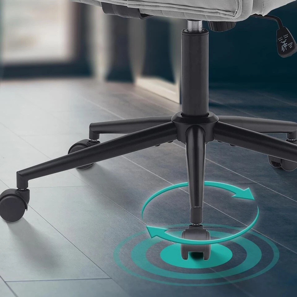 De bureaustoel is in hoogte verstelbaar en 360 graden draaibaar, zodat je hem kunt aanpassen aan je individuele behoeften. Dankzij de vijf lichtlopende wielen kan de stoel moeiteloos worden verplaatst zonder de vloer te beschadigen. De spanning van het geïntegreerde wipmechanisme kan worden aangepast.
