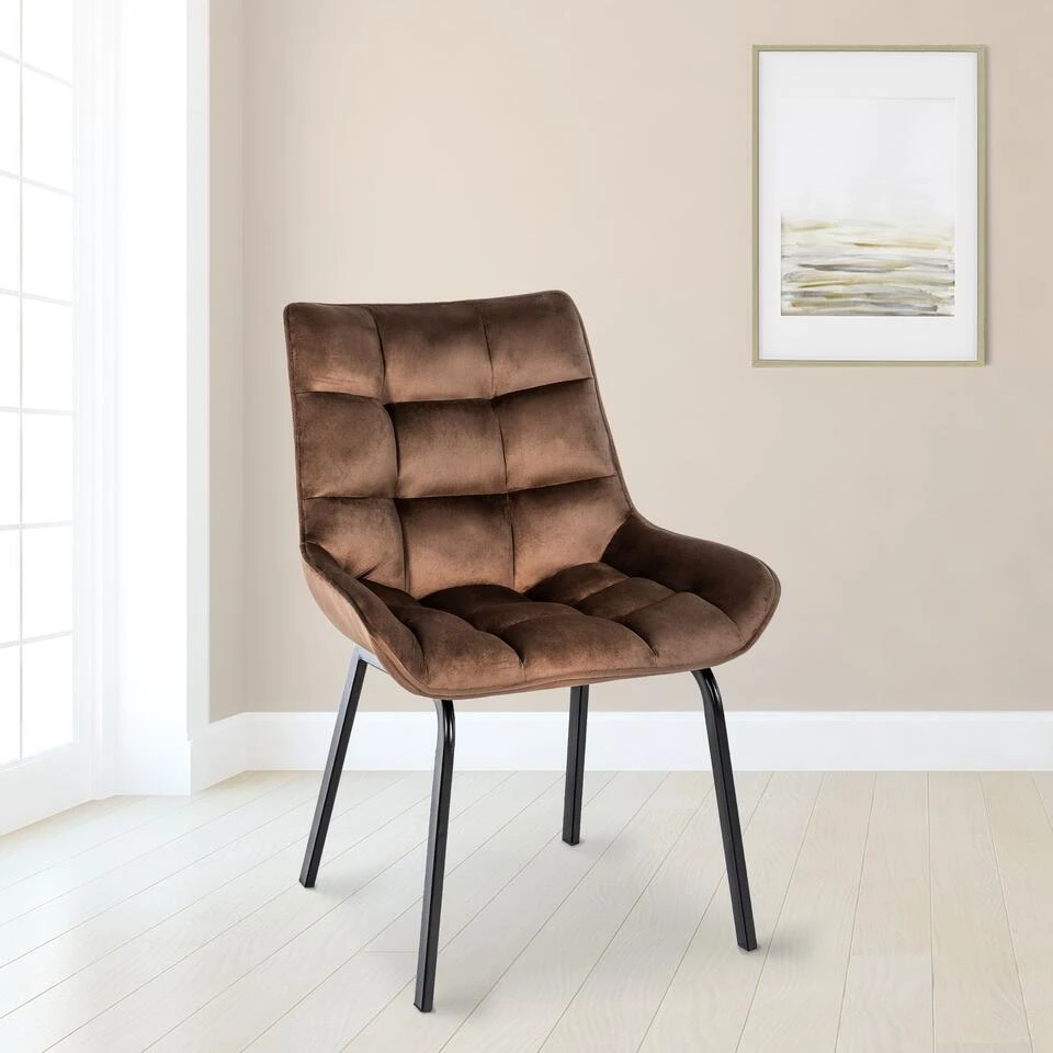 De stoel heeft een royaal gestoffeerde zitting met een stijlvol gewatteerd patroon. Dankzij de bekleding kun je langere tijd comfortabel zitten. Het zitcomfort wordt gecompleteerd door de rugleuning.