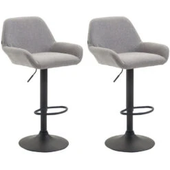 De set van 2 barkrukken Braga wordt gekenmerkt door een stijlvol ontwerp en de verwerking van hoogwaardige materialen. De stoelen van de barkrukken hebben een comfortabele bekleding van vormstabiel koud schuim en zijn bedekt met onderhoudsvriendelijke stof (100% polyester). De robuuste metalen frames in chroomlook zijn uitgerust met een voetsteun. De barkrukken zijn in hoogte verstelbaar door middel van een gasveer. De stoel kan 360 ° worden gedraaid.