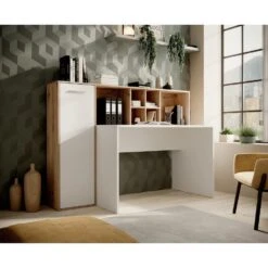 Het draaibare thuiskantoor bureau Gibril is een ideaal transformeerbaar meubel voor kleine ruimtes. Gemaakt in Frankrijk in Vendée,is dit bureau ontworpen met een uitsparing aan de zijkant van de draaikast om de manipulatie te vergemakkelijken. Het bureau heeft een lengte van 136 cm wanneer het gesloten is,maar wanneer het geopend is,heeft het werkgebied een lengte van 154 cm met een retour van 97 cm.De lade opent aan de onderkant met een soft 45° rand,wat zorgt voor gemakkelijk en praktisch gebruik. Het draaibare thuiskantoor bureau Gibril is een veelzijdig meubel dat in een handomdraai kan worden gebruikt als een buffet of bureau. Het is perfect voor kleine ruimtes en biedt een praktische oplossing voor mensen die een thuiswerkruimte nodig hebben.Het draaibare thuiskantoor bureau GABIN is gemaakt van natuurlijk kastanjehout,wat zorgt voor een elegante en natuurlijke uitstraling. Het is gemakkelijk te onderhouden en schoon te maken,waardoor het een ideale keuze is voor mensen die op zoek zijn naar een praktisch en esthetisch meubel.Kortom,het draaibare thuiskantoor bureau GABIN is een praktisch en elegant transformeerbaar meubel,gemaakt in Frankrijk in Vendée. Het is perfect voor kleine ruimtes en biedt een praktische oplossing voor mensen die een thuiswerkruimte nodig hebben. Met zijn afwerking in natuurlijk kastanjehout is het gemakkelijk te onderhouden en schoon te maken,waardoor het een ideale keuze is voor mensen die op zoek zijn naar een praktisch en esthetisch meubel.