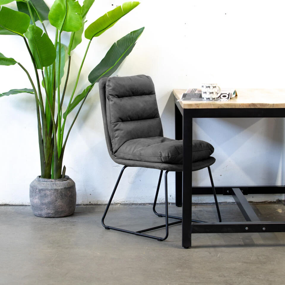 Stoel Fabio Antraciet Met stoel Fabio weet je zeker dat je lekker zit! Hij heeft een zacht zitcomfort en een stijlvol design. De leren bekleding geeft de stoel een stoere look en valt perfect te combineren met een industriële tafel. De zithoogte is 47cm en de zitdiepte 42cm. Fabio is ook verkrijgbaar in de kleur cognac en in een barstoel variant. Stoel Fabio Antraciet.