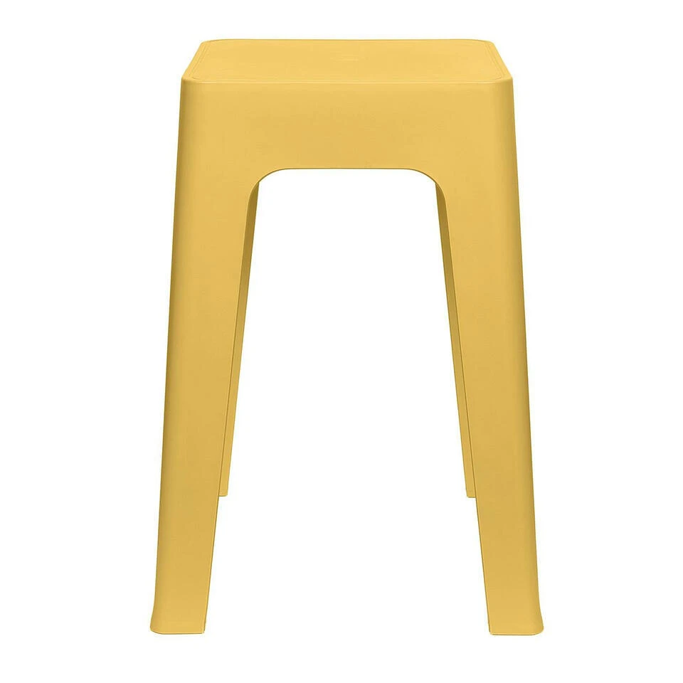 Bijzet krukje/stoeltje in de kleur geel. De krukjes om op te zitten zijn goed stapelbaar. Afmetingen: ca. D34 x H47 cm. Handige zit krukjes om voor extra zitplaatsen te zorgen. Extra stoelen, gemaakt van PP kunststof. Voor als je extra zitplaatsen nodig hebt voor een feestje en visite. Dit krukje is ook perfect te gebruiken als buiten bijzet tafeltje.