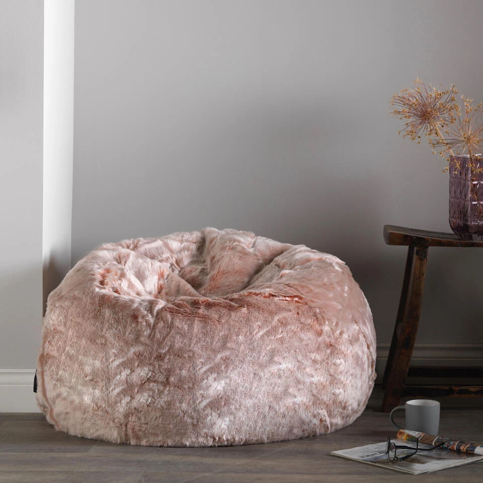 KNUS, GEZELLIG; Deze zitzak, gemaakt van ons super zacht, luxe tweekleurig imitatiebont, heeft een onweerstaanbaar aanvoelende donzige textuur en is gevuld met precies de juiste hoeveelheid kralen voor een perfect ondersteunend inzakeffect.