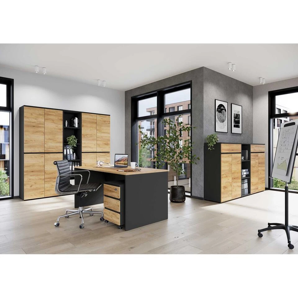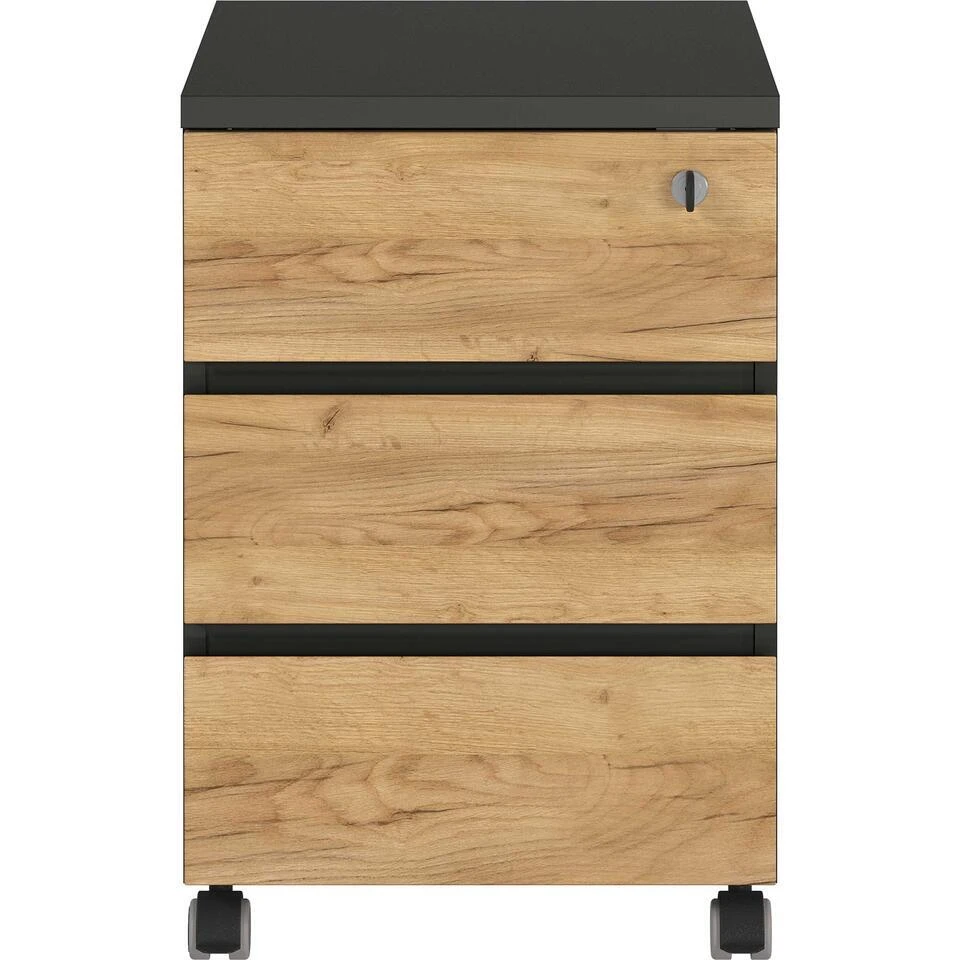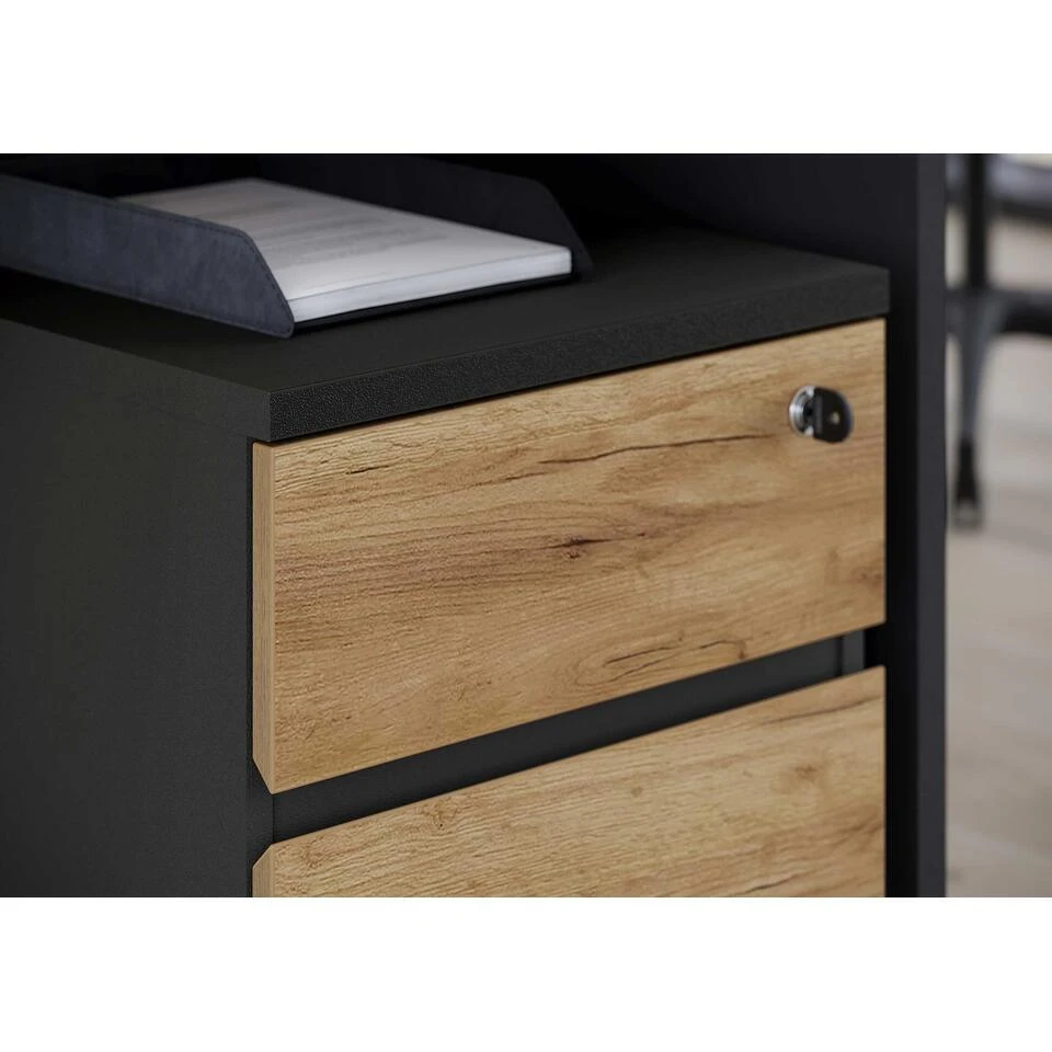 Het maakt niet uit waar je werkt, op kantoor of thuis, om optimaal te kunnen presteren is een opgeruimde werkplek noodzakelijk. In een opgeruimde werkkamer vind je sneller terug wat je nodig hebt, waardoor je meer rust ervaart tijdens het werken, en verlies je minder snel het overzicht. Daarnaast straalt een opgeruimde werkplek professionaliteit uit. Dit ladeblok maakt deel uit van de Miguel-collectie. Deze collectie bestaat uit een hoekbureau, een hoge en lage dossierkast en een verplaatsbaar ladeblok. Gecombineerd maken ze van je werkkamer een ruimte waarin je je voor de volle 100 % kunt concentreren. Ladeblok Miguel beschikt over 3 lades (max. 10 kg per lade) en is uitgerust met 4 wielen, waarvan er 2 vergrendelbaar zijn. De bovenste lade is van een slot voorzien. Dankzij de dempers sluiten de lades zacht en traag. Het ladeblok is gemaakt van gemelamineerde spaanplaat.