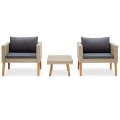 MARCEDDI -Tuinstoel Met Voetenbank Set Van 2 – Beige – Textileen