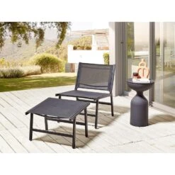 MARCEDDI -Tuinstoel Met Voetenbank Set Van 2 – Zwart – Textileen