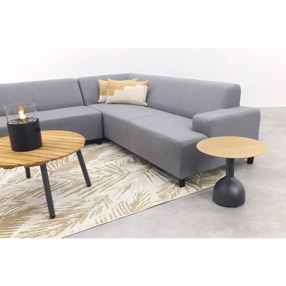 Beleef ultiem comfort met de stijlvolle Malaga hoekbank loungeset en de trendy Mindo koffietafel! De lichtgrijze hoekbank, bekleed met weerbestendige stof, biedt plaats aan vier personen en is ideaal voor buiten. Dankzij de robuuste aluminium constructie geniet je jarenlang van deze set. De Mindo bijzettafel heeft een uniek teakhouten blad en onderhoudsvrije, lichtgewicht aluminium poten, waardoor hij makkelijk te verplaatsen is. Deze complete loungeset is nu verkrijgbaar tegen een zeer scherpe prijs. Bestel snel online of kom langs in onze showrooms in Opheusden, Duiven of Apeldoorn en ervaar het comfort zelf!