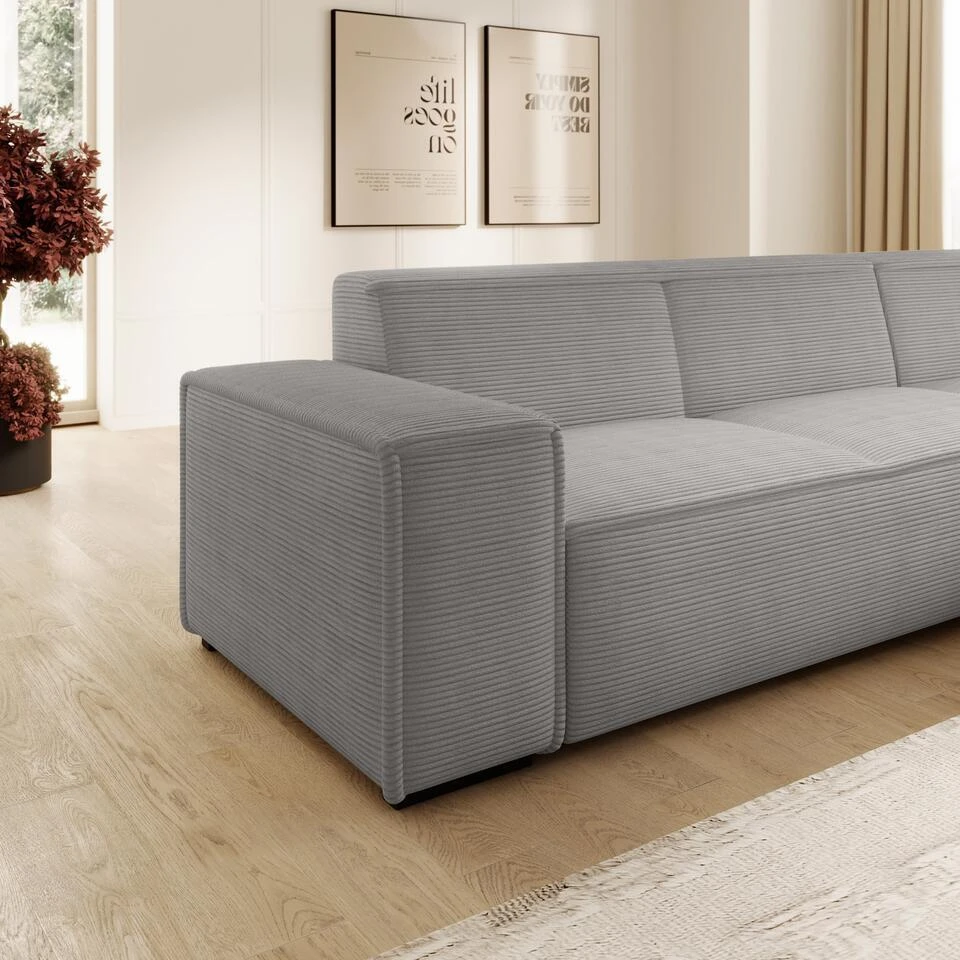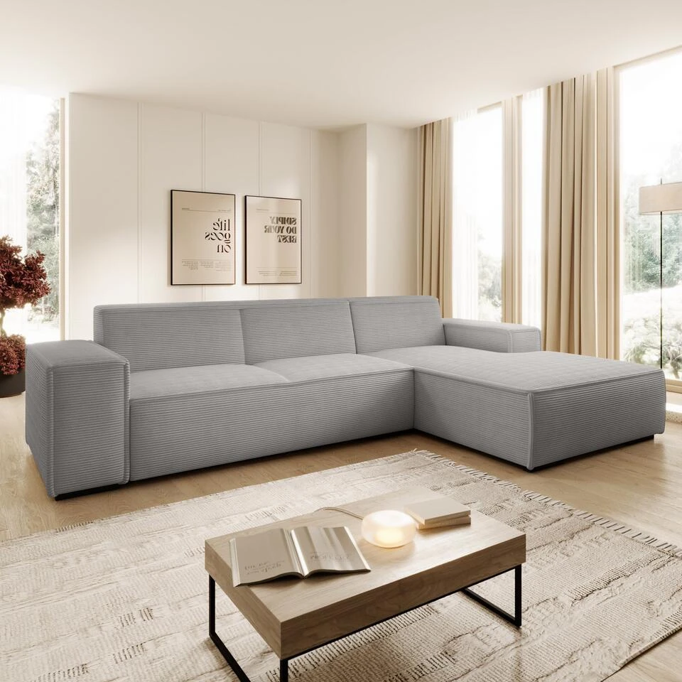 Hoekbank Cardiff is een moderne bank voor 3 personen in L-vorm. De bank is bekleed met een ribstof in de kleur grijs. De stof voelt fijn aan en straalt warmte en comfort uit. Deze hoekbank beschikt over vaste zit- en rugkussens. Het meubel wordt ongemonteerd geleverd. Je dient het dus met behulp van de bijgeleverde handleiding zelf in elkaar te zetten.