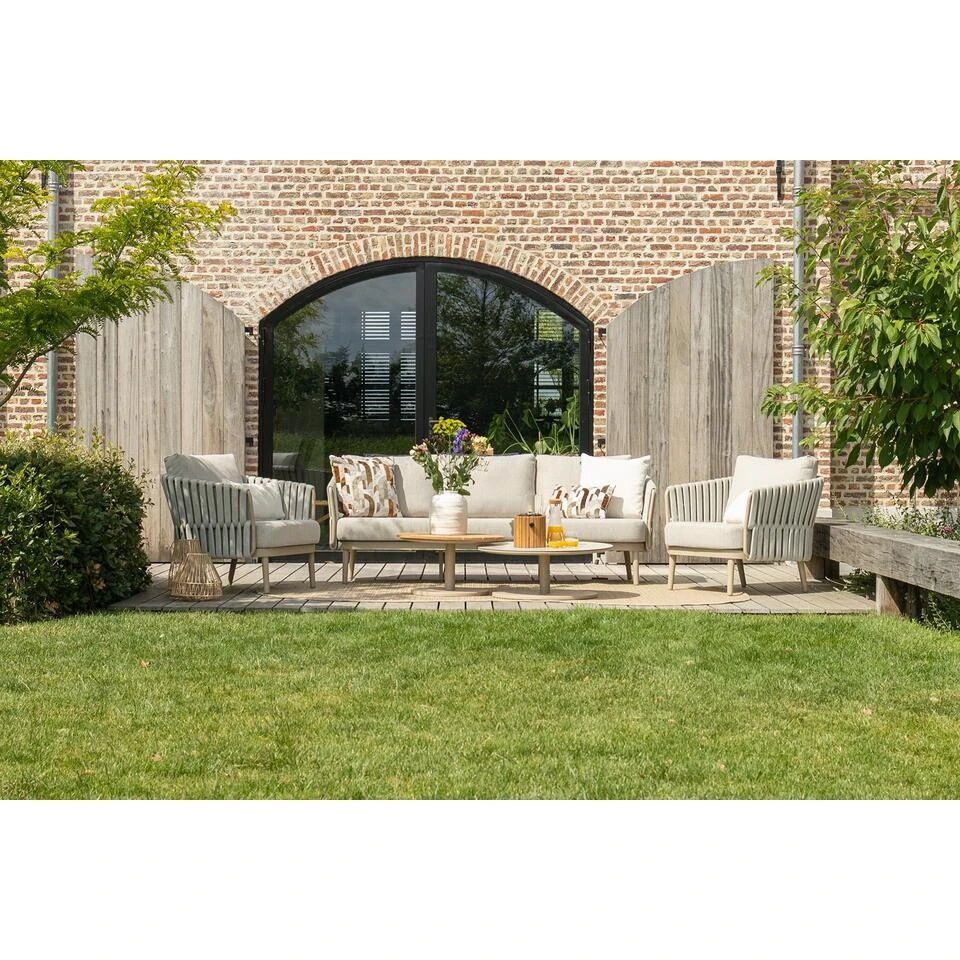 Zoek jij rust en ontspanning in jouw tuin? Dan is de Eva loungeset van Taste een perfecte aanvulling! Deze stoel-bank loungeset heeft een fijne ontspannen zit en een verfijnde uitstraling. De zachte kleuren maken deze 3-delige loungeset uniek. De brede stroken ropen die het frame sieren, zorgen voor een zachte uitstraling van deze set. Hierdoor oogt het bij elkaar erg rustig. Prima passend voor een Scandinavische of Japandi tuin! Wil jij deze Eva loungeset ook in jouw tuin hebben staan? Bestel dan direct online!