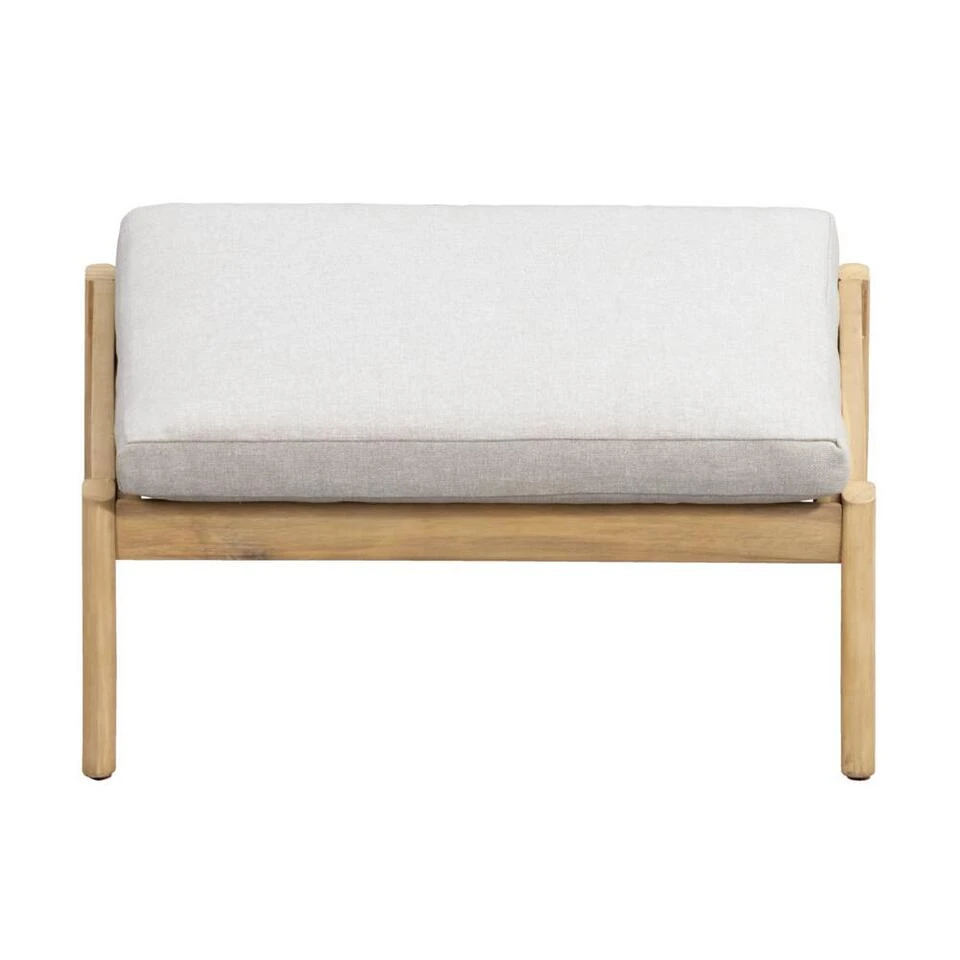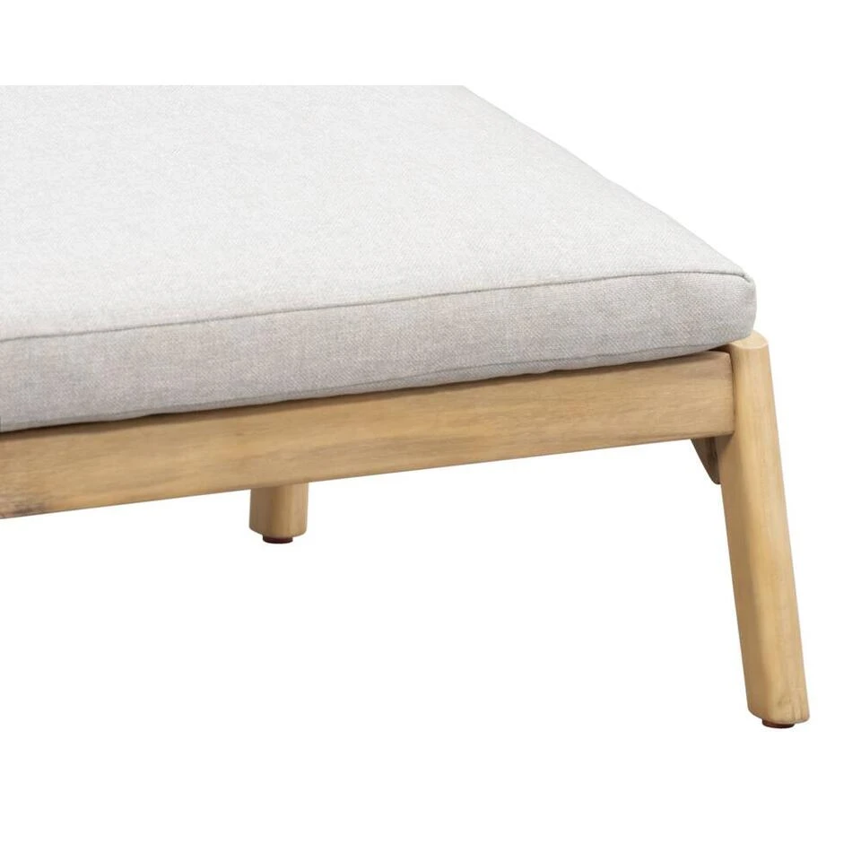 Het voetenbankje Jura is gemaakt van acaciahout met een FSC keurmerk. Dat wil zeggen dat het hout uit duurzaam bosbeheer is gewonnen. De kussens zijn inbegrepen en hebben een grijze kleur. In combinatie met het hout geeft dat het voetenbankje een landelijke uitstraling. Combineer de hocker met andere artikelen uit de Jura lijn om je tuin compleet te maken.